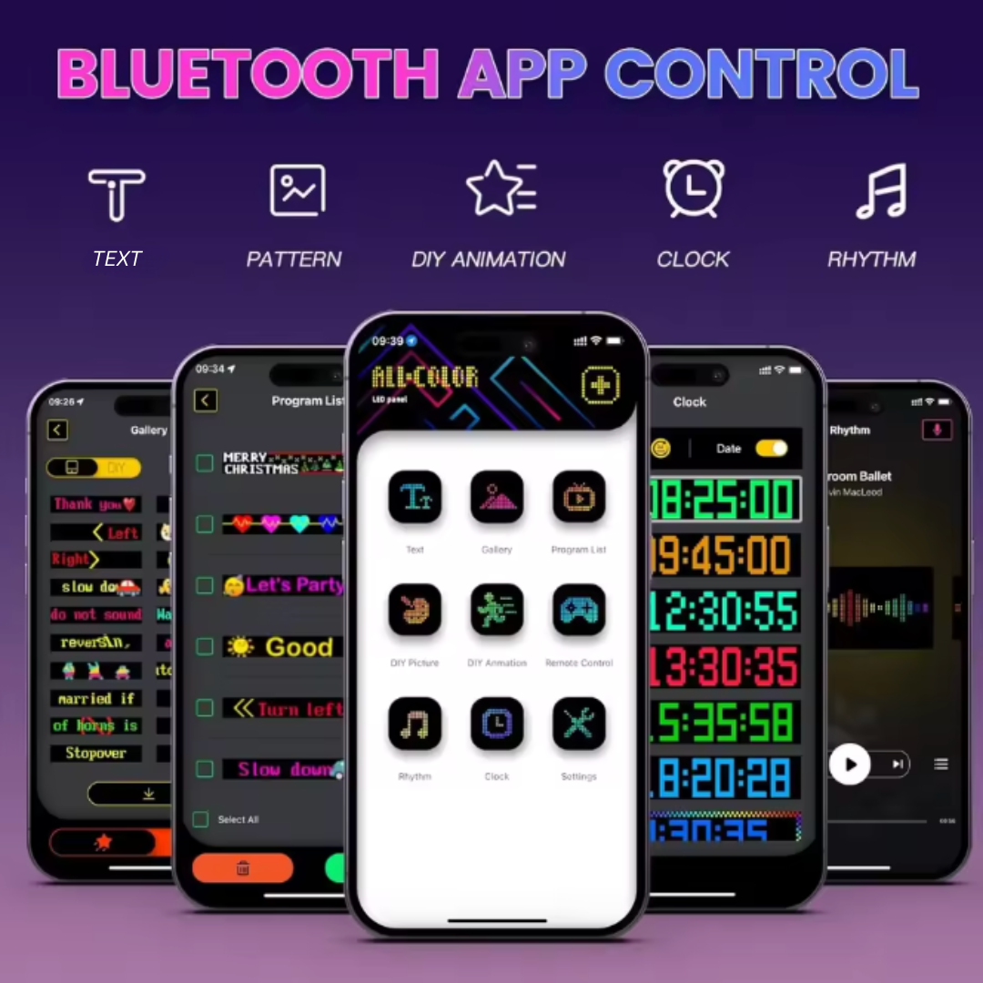 You can use the included remote control or connect via the official Auridash™ app to choose designs and animations.